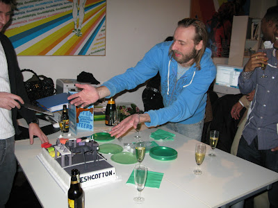 We have been doing a lot of tearing down, re-building and painting at our office lately. A new photostudio, new office for the logistic guys and a brand new showroom. I have been wanting to do some before, construction and after updates, but I can't seem to get all the pics together (call it lazy). Maybe later. Last week when it was (almost) finished we had a good excuse to throw a little party, so we could fuck up everything we had been working on so hard the last couple of weeks.